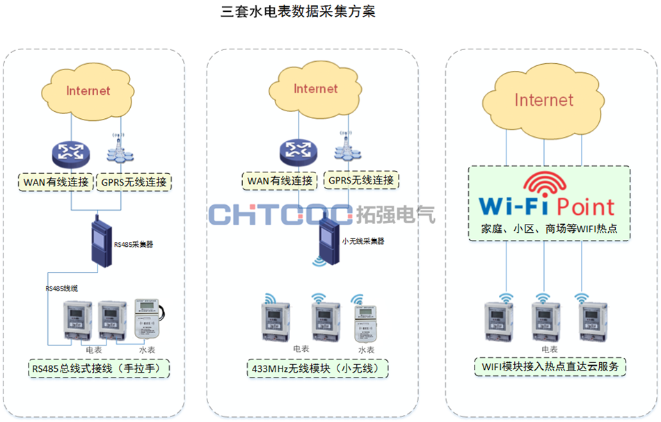 電能表本身不具備物聯(lián)網(wǎng)通訊能力,行業(yè)內(nèi)通過在一定范圍內(nèi)布置采集器,將多只電能表數(shù)據(jù)采集到一臺采集器后發(fā)送給云端服務(wù)器。