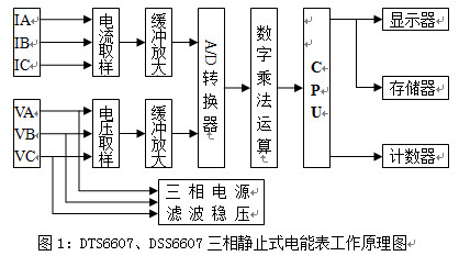 DTS6607、DSS6607型三相靜止式電能表工作原理如圖1所示。