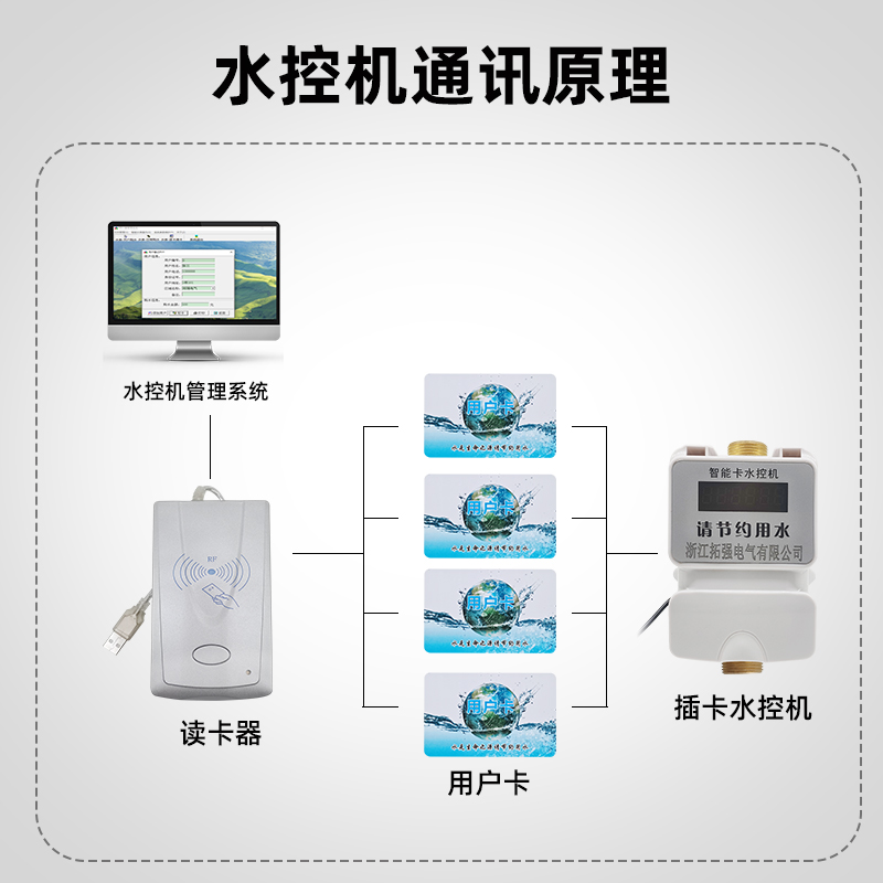 1. 提高澡堂等用水場地的使用效率。 2 顯示用水扣款金額、余額和用到臨界值時的提示。 3. 全防水設計,鍵盤和上下殼接口有硅膠密封件防水。 4. 先扣款后消費,可自由設定扣款計費時間和金額。 5. 獨有節(jié)水設計,采用讀卡和按鈕開關雙重方式控水,插卡后按下按鈕“開”,水控機出水;拿走卡或按下按鈕“關”,則停止出水,操作更加人性化和突顯節(jié)水功能。 6. 采用計時方式扣費時,可以對費率進行靈活設計,符合各種需要。 7. 配合流量表,可以采用計流量方式扣費,更加科學、公平、合理。 8. 采用電子錢包方式,僅記錄刷卡總額,免去賬目核對的煩惱,采用采集卡提取數(shù)據(jù),無須復雜聯(lián)網(wǎng),減少施工量。 9. 系統(tǒng)安裝簡便,用戶充值簡易方便,可以通過自助充值機進行卡內轉帳和管理中心充值兩種方式。 10. 可以與門禁、消費、考勤等設備實現(xiàn)一卡通無縫連接。