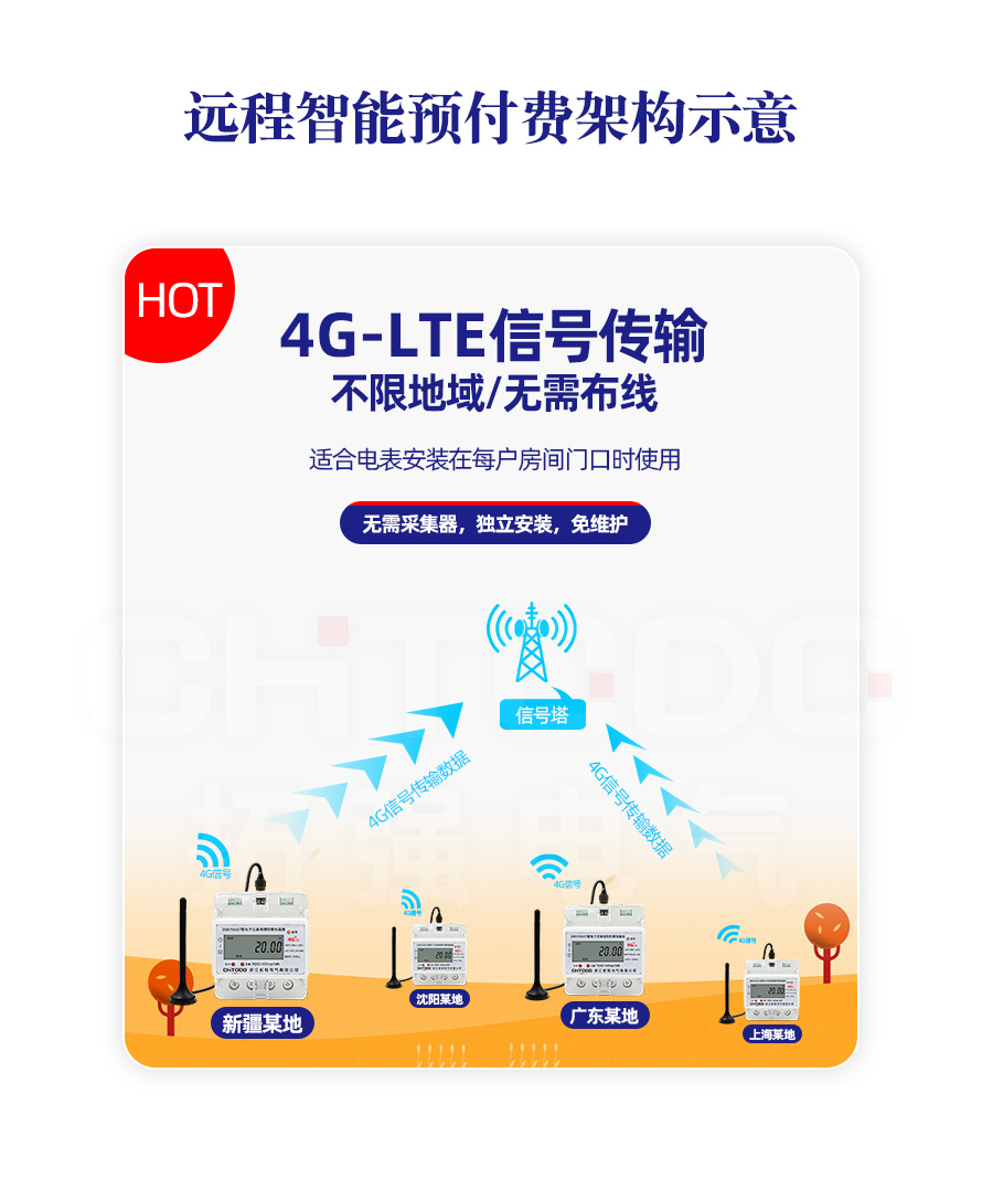 該儀表能實現預付費,設定日抄表,掌上電腦編程及抄表等功能;并具有紅外和GPRS聯網等功能,電表內置有10年流量卡,無需網關、采集器、集中器等設備,通電即可自動聯網,電表具有遠程抄表、遠程控制電表通斷電及手機APP遠程售電功能。通信規約可支持DL/T 645-2007《多功能電能表通信規約》,為物業小區用戶用電自動化管理提供了必備的條件,適用于小區,商超,寫字樓,工業園,出租房,公寓,工廠內部能耗管理等場所。
