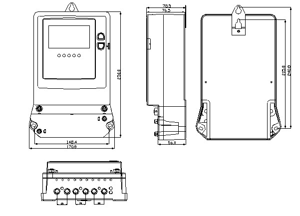 2.3.2電能表安裝在室內通風干燥的地方,用三個螺釘固定,按下圖3所示的安裝尺寸在底板上先鉆好孔,底座應固定在堅固、耐火、不易震動的物體上,確保安裝使用安全、可靠,在有污穢或可能損壞電表的場所,電能表應用保護柜保護。