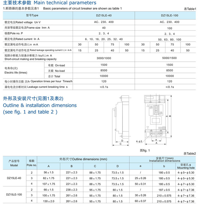DZ15LE系列漏電斷路器適用于交流50Hz、額定電壓400V/230V,額定電流至100A,作觸電漏電保護用。具有隔離、斷相保護功能,適用于建筑行業分配電。并可用來保護線路和電動機的過載及短路以及作為線路的不頻繁轉換及電動機的不頻繁起動之用。